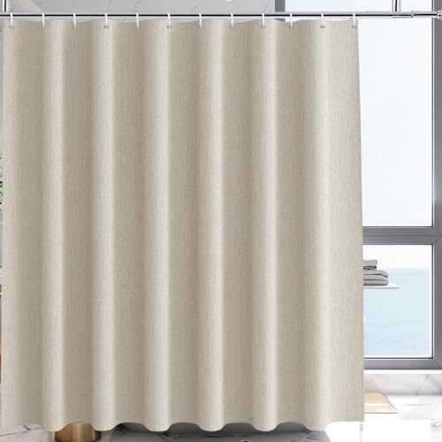 YISURE Duschdraperi beige konstlina, badgardin textiltyg tunglastområde vattentät, bredd 200 x höjd 240 cm