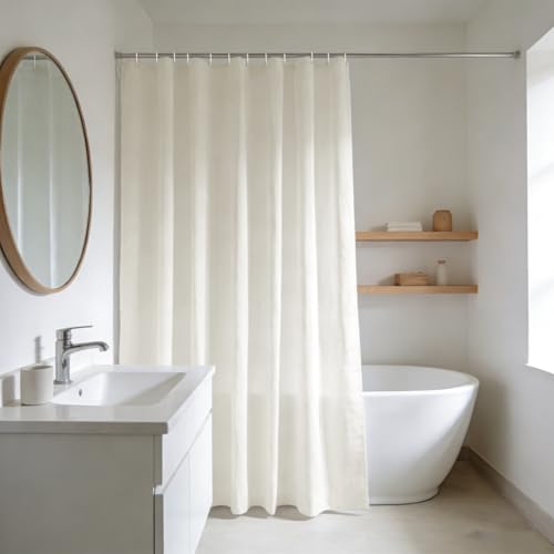 Lin Linne med 240 g kraftigt duschdraperi för badrum med krokar hotelltyg tvättbart, Elfenben, 180 x 240 cm