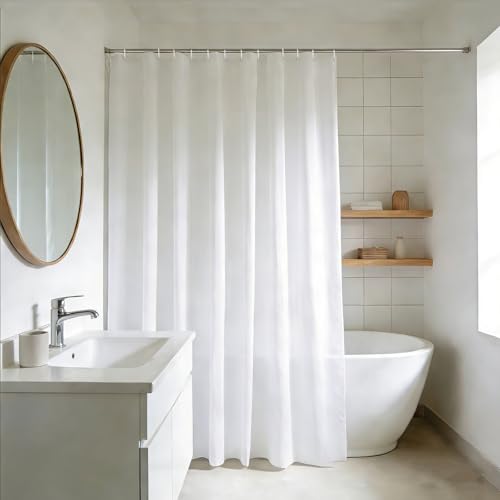 Lkw Ogechi vitt duschdraperi vattentätt 200/220/240 cm droppe, 240 cm extra långt polyester tvättbart baddraperi, kraftigt extra stort mögelsäkert duschdraperi, med viktad fåll (200 x 220 cm)