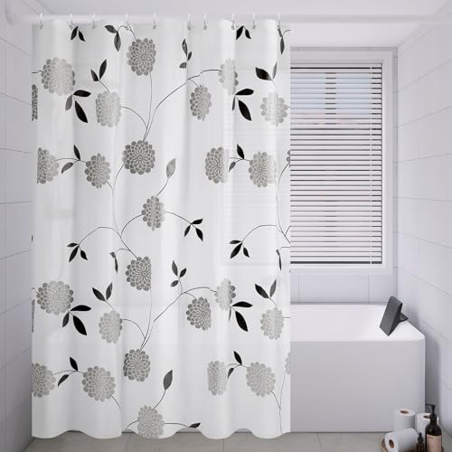 Lkw Ogechi duschdraperi 200/220/240 cm fall – svarta bladmönstrat PEVA-duschdraperi för våtrum, antitimulära och vattentäta badrumsgardiner (180 x 220 cm), Halvtransparent