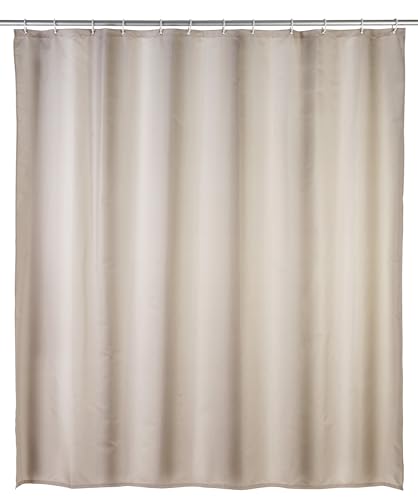 WENKO Anti-mögel duschdraperi uni beige – anti-bakteriell, textil, tvättbar, vattenavvisande, mögelresistent, med 12 duschdraperiringar, polyester, 180 x 200 cm, beige