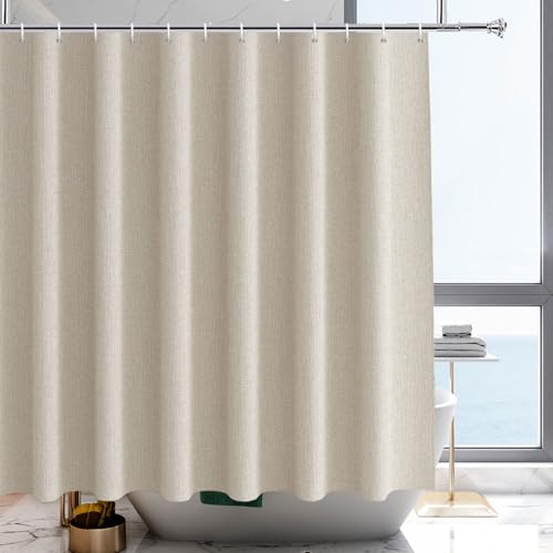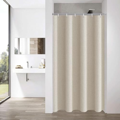 YISURE Duschdraperi beige 180 x 200 linneutseende, konstlinne, tung badgardin, textiltyg, vattenavvisande, maskintvättbar, bredd 180 x höjd 200 cm