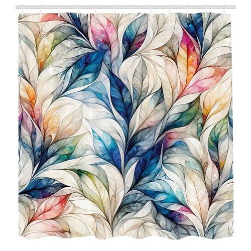 ABAKUHAUS Färgglatt duschdraperi, drömlik ansamling av Fantasy skogsblad med mystisk botanik aura, tygligt tyg badrumsdekorationsset med krok, 175 x 200 cm, aqua beige flerfärgad