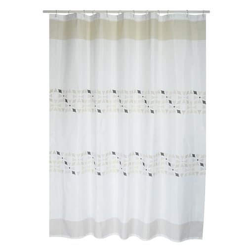 TATAY Duschdraperi Tyg 180x200 cm | Inkl. 12 Ringar | Tvättbart Duschdraperi Modern Design | Hållbart Polyester | Modell Nature – Vit & Beige