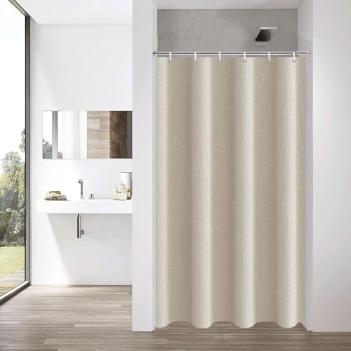 YISURE Duschdraperi 90 x 200 beige, linneutseende, konstlinne, tung smal badgardin, textiltyg, vattenavvisande, maskintvättbar, bredd 90 x höjd 200 cm