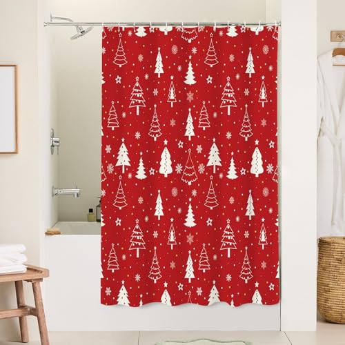 AIBIIN Röd jul duschdraperi julgran snöflingor badgardiner för badrum hållbart polyestermaterial med 12 krokar 180 x 180 cm