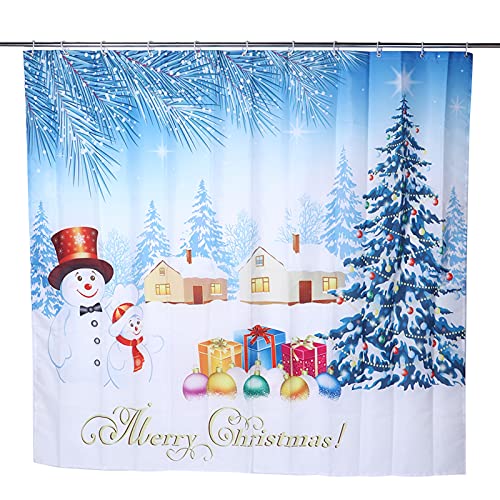 Hapivida Jul duschdraperi för badrum, snögubbe mönster polyestertyg vattentätt duschdraperi med krokar 200 x 180 cm för hem badrumsdekoration