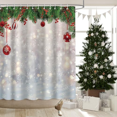 APROPHIC Jul Duschdraperi Vinter Snöflinga Blad Duschdraperi Set Tvättbart tyg God Jul Badrumsgardin 72x72 tum med Krok