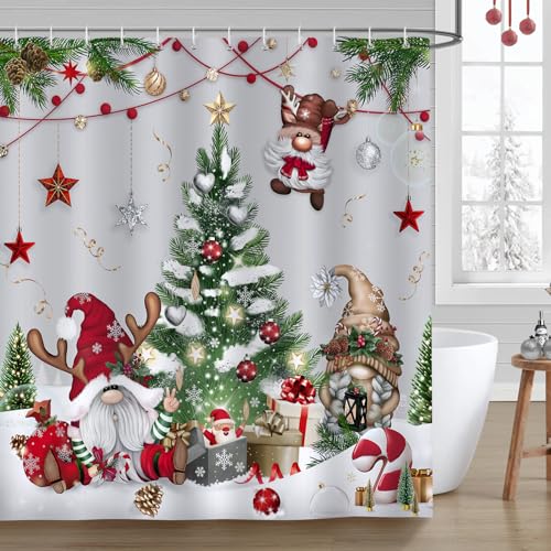 Bonhause Duschdraperi Jul GNOME Xmas trädbollar vintersemester duschdraperier 180 x 180 cm. Antimögel duschdraperi med vattentät polyester. Motiv: Tvättbart antimögel duschdraperi för badrum med 12