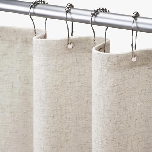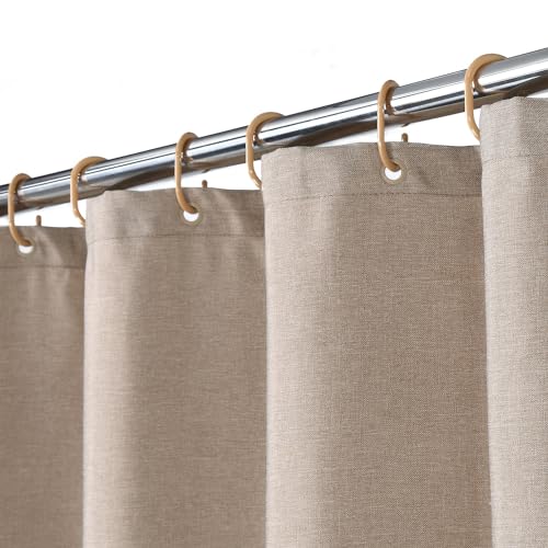 Lkw Ogechi 180 x 220 cm linne vattentätt duschdraperi, mögelbeständigt extra långa tunga duschgardiner, linne vattentåligt duschdraperi med viktad fåll för våtrum (beige)