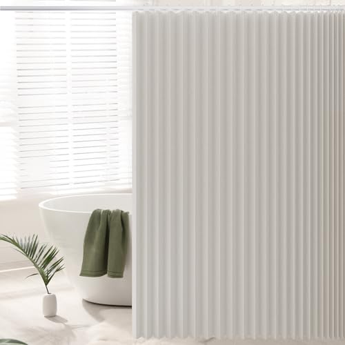 Långt texturerat duschdraperi utan krokar, set med snäppbart PEVA-foder, hotellstil med genomskinligt övre fönster, tyggardin och vattentätt foder, linne, 180 x 188 cm (183 cm)