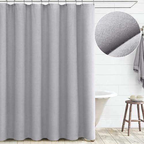Lkw Ogechi 180 x 220 cm linne vattentätt duschdraperi, mögelbeständigt extra långa tunga duschgardiner, linne vattentåligt duschdraperi med viktad fåll för våtrum (grå)