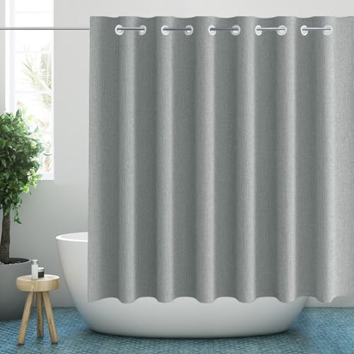 YISURE Kroklös duschdraperi grå linne tung, badgardin textiltyg vattenavvisande maskintvättbar, bredd 200 x höjd 220 cm