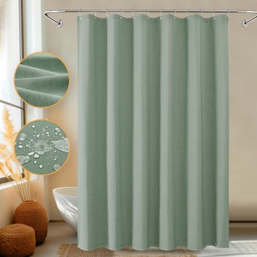 Duschdraperi, kraftigt linne textur tyg duschdraperi med viktad fåll som minskar dess blåsande, mjuka vattentäta duschdraperier med 8 krokar i rostfritt stål för, 122 cm x 183 cm (mörkgrön)