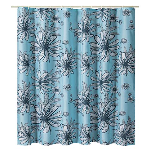 Serafina hem mineralblå blågrön modernt tyg duschdraperi för badrum: kaskad vattenstänk mönster av turkos, aqua och vit