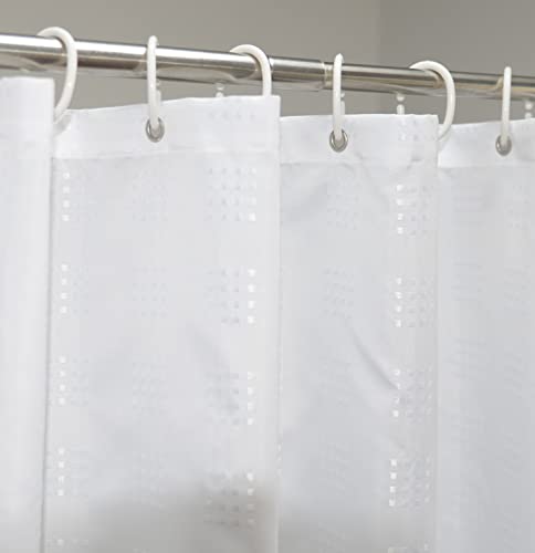 Barossa Design extra långt duschdraperi med 213 cm höjd, tyg, våffelväv, hotellsamling, maskintvättbar, pique-mönster för dekorativa badrumsgardiner 71 B x 84 L (extra lång) vit