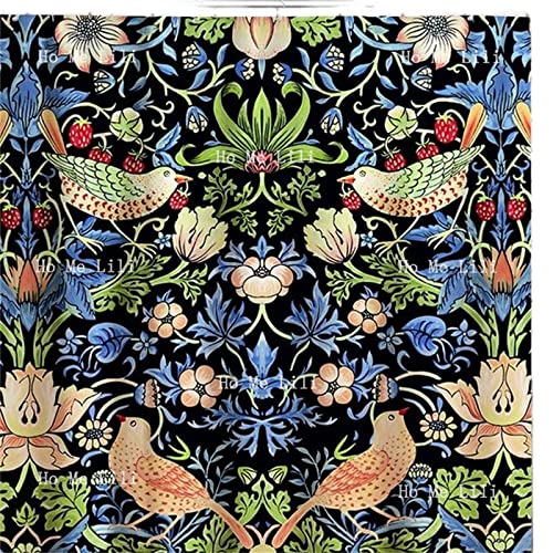 YTITILUCK William Morris Konst Prydnads Duschdraperi Jordgubbstjuv Vintage Mönster Botaniska Fåglar Blommig Badrumsdekor Gardin, 120Bx210Lcm Badrums- Duschgardin