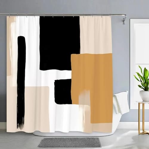 YIUEYI Abstrakt geometriskt mönster färgblock duschdraperi, vintage konst minimalistiska vattentäta duschdraperier badrumsdekor 120 x 190 cm/47 x 75 tum (BxH)