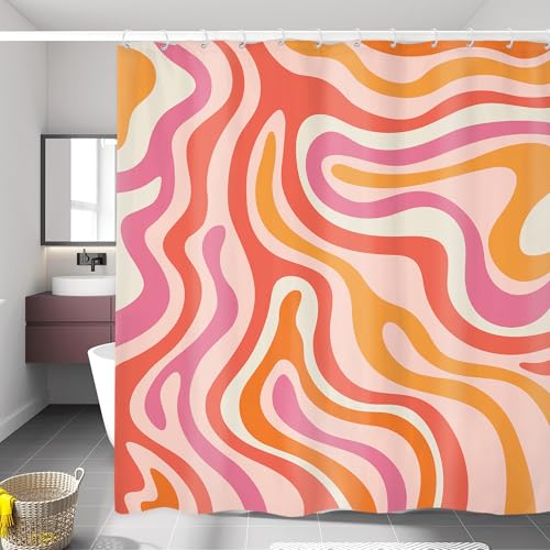 LIGHTINHOME Retro 70-tal häftigt duschdraperi 182 cm B x 182 H cm vintage abstrakt funky modern konst estetiska mönster färgglatt tyg tyg tyg vattentät polyester badrum heminredning set med krokar