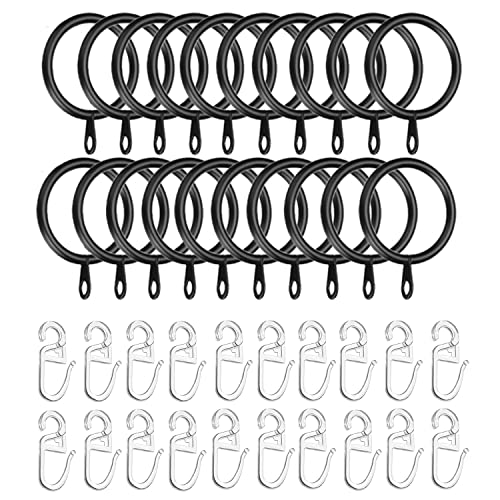 HCRXVV Gardinringar svart 20 set metall gardinringar med gardinkrok, duschdraperi ringar av plast för fönster dörr duschdraperier, gardinringar 30 mm innerdiameter