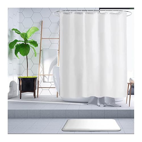 YQN (inget foder) – på kroklöst duschdraperi krokfri polyester 180 cm x 190 cm duschdraperi med ljusfiltrerande nätskärm och magneter anti-mögel premium ABS Flex-On ringar vit