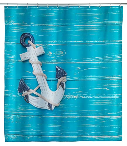 Wenko duschdraperi ombord, textildraperi för badrum, med ringar för fastsättning på duschstången, tvättbar, vattenavvisande, 180 x 200 cm