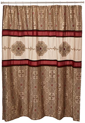 Madison Park Donovan design vävt rött duschdraperi, Jacquard traditionella duschdraperier för badrum, 183 x 183 cm, rodna