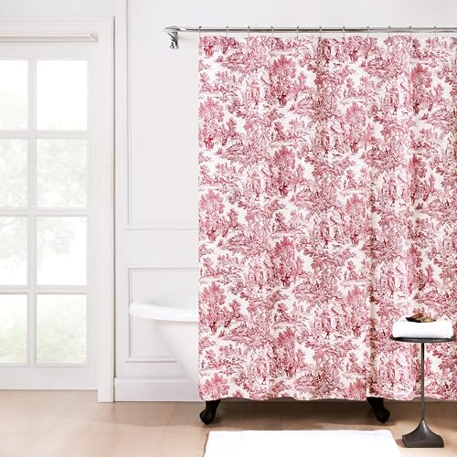 Frodig dekor Riley duschdraperi, 183 cm B x 183 cm L, rouge – lyxigt duschdraperi med bågar – charmig textur – vacker och elegant flickigt badrumstillbehör – romantisk, vintage glam badrumsdekor