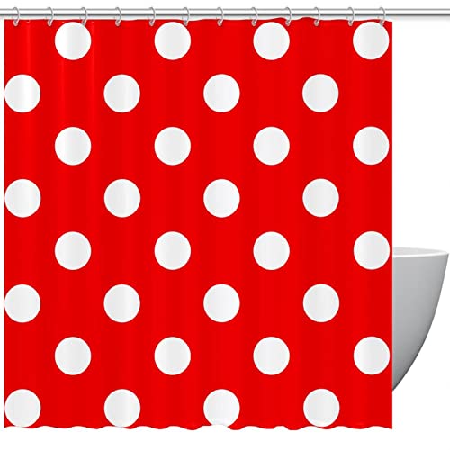 MSV "Circles Polyester duschdraperi, vit/röd, 200 x 180 cm