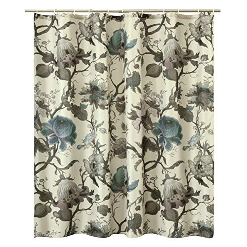 Madison Park Serene Flora tyg duschdraperi, broderade övergångsduschdraperier för badrum, 183 cm x 183 cm, röd