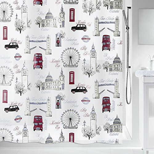 Spirella Westminster Sand/Röd Duschdraperi 180 x 200 cm, Flerfärgad