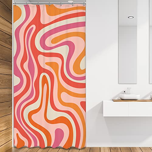 LIGHTINHOME Modernt abstrakt duschdraperi, liten, 91,4 x 183,9 cm (B x H), rosa/orange, groovig, estetisk, söt, 70-tals retro virvel, smal badrumsgardin, tyg, vattentät,