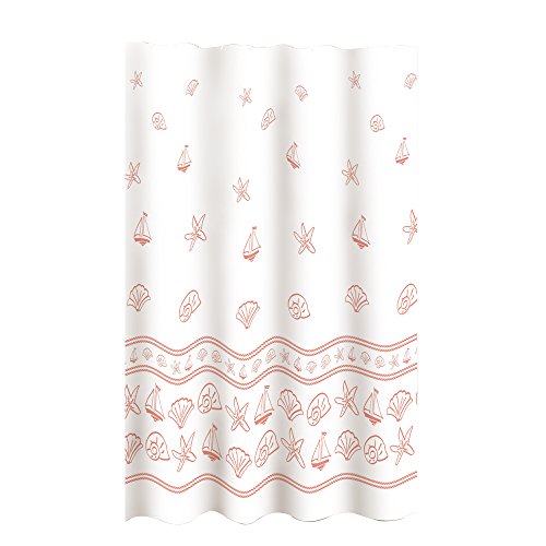 MSV Polyester duschdraperi 180 x 200 cm skal, vit/rosa