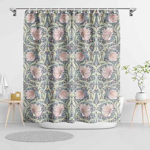 Fchen art Boho akvarell rosa grön blommig duschdraperi William Morris design tyg duschdraperi set badrum polyester vattentätt duschdraperi med 12 krokar 180 x 180 cm