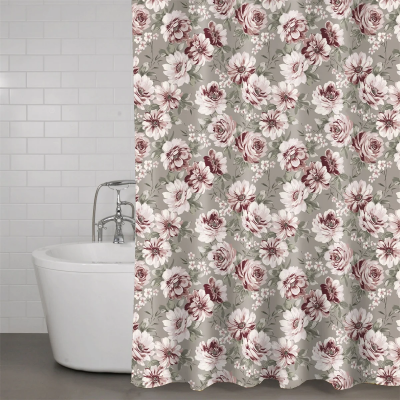 Duschdraperi - 180x180 cm - Rosa med blommor - Färdigt att hänga