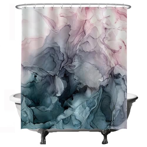 Ulticool Duschdraperi, marmor, pastell, akvarell, abstrakt konst, tvättbart, antimögeleffekt, vattentätt, med 12 ringar, marmor, blått rosa, 180 x 200 cm