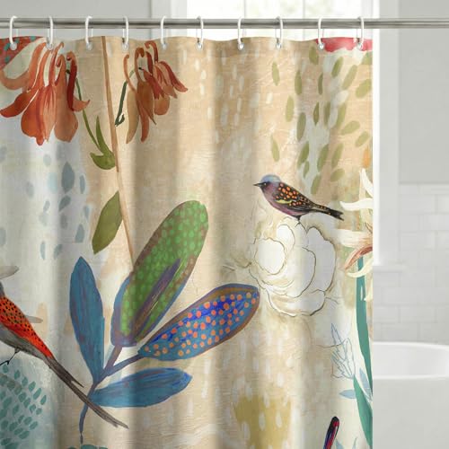 goodbath Flamingo duschdraperi, tropiska blad och blommor vattentätt anti-mögel tyg badrum duschdraperier, 72 B x 72 H, rosa grön