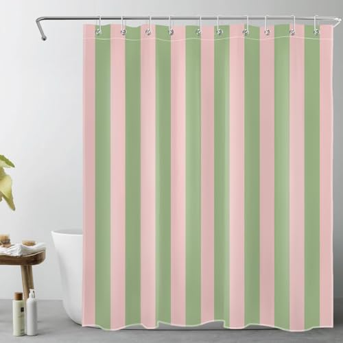EOBTAIN Rosa och grön randig duschdraperi för badrum modern abstrakt minimalistisk vertikal rand duschdraperi med 10 krokar vintage estetiska badrumsgardiner duschset 1804 x 152 cm, YL31804