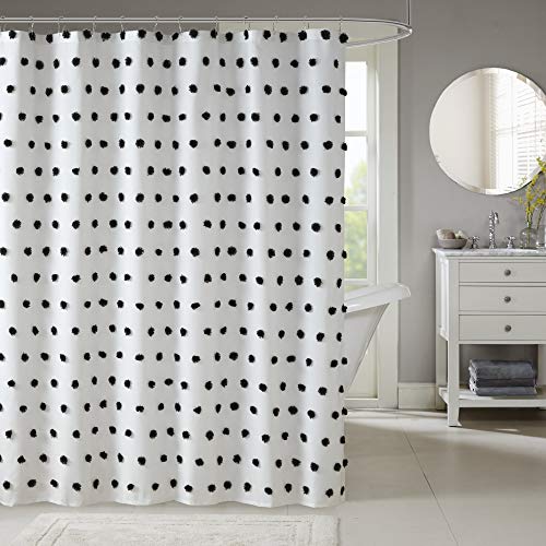 Madison Park Sophie trendigt duschdraperi med texturerad pom-poms accent, modern badrumsinredning, maskintvättbar bad insynsskydd, 183 cm x 183 cm, svart/vit