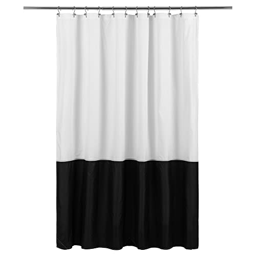 Vattentätt tyg duschdraperi foder – mjukt och lätt tyg duschdraperi med 3 bottenmagneter, hotellkvalitet och maskintvättbar – standardstorlek 72 x 72, färgblock svart och vitt