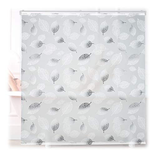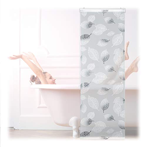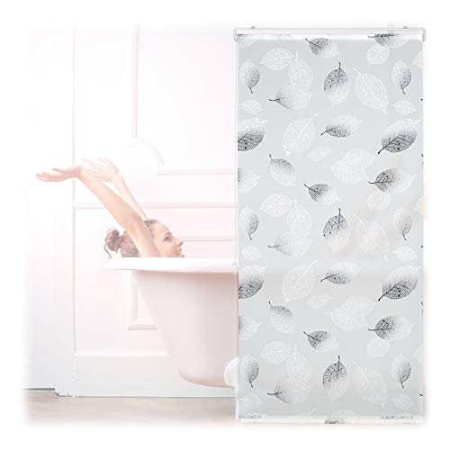 Relaxdays Duschgardin, bladmönster, lina, flexibel montering, duschdraperi för badkar, svart-vit, 60 x 240 cm