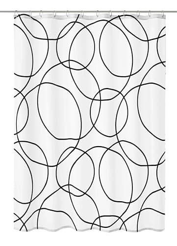 MSV Antimögel duschdraperi – anti-bakteriell, tvättbar, vattentät, med 12 duschdraperiringar – polyester, "cirklar vit svart". 180 x 200 cm PVA
