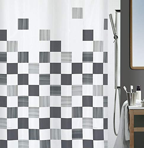 RIDDER Duschdraperi textil, 100% polyester, vit-grå-svart, 180 x 200 cm