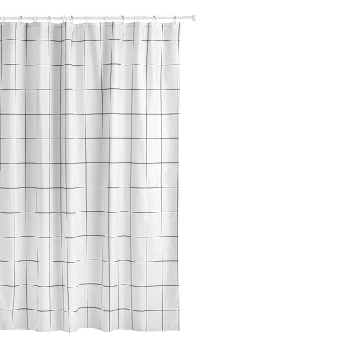 MAYTEX Duschdraperi, polyester, svart vit, 178 cm B x 183 cm L (paket med 1)