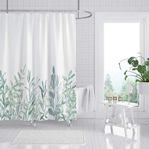 M&W DAS DESIGN Duschgardin gröna växter badrum blad textilgardin med anti-immel effekt tvättbar blommor duschdraperi badkar inkl. 12 C-ringar med vikt under 200 x 220 cm (B x H)
