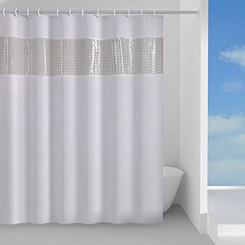 N&Y HOME Lång duschgardin fodertyg – 183 x 198 cm längre längd, hotellkvalitet, mögelbeständig, tvättbar, vattenavvisande, vita spa badrumsgardiner med öljetter