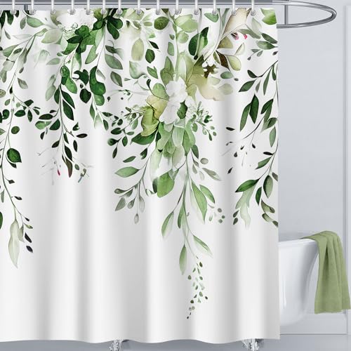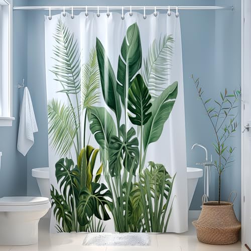 LIVETTY Duschgardiner grönt blad duschdraperi 200 x 200 cm dropptyg duschdraperi för badrum snabbtorkande köksgardiner maskintvättbar med 12 krokar – flerfärgad