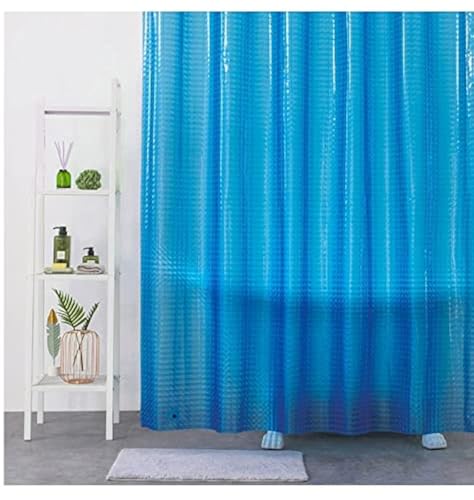 LshyMn Blå EVA duschdraperi 180 x 180 cm, foder 3D genomskinliga duschgardiner för badrum, klar EVA duschdraperi för duschkabin med krokar YLYZMN1