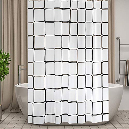 Vllcsla Duschgardiner, mögelbeständiga för badrum 180/200/220/240 cm - stora fyrkanter mönster extra långa PEVA badrum duschdraperier antibakteriella 220 cm/240 cm fall (200 x 200 cm)