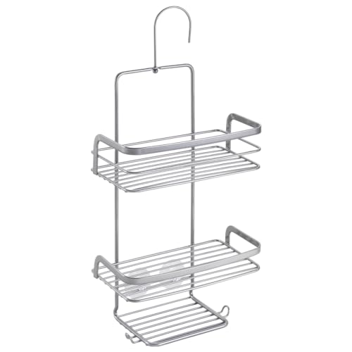 Croydex Duschhylla hängande duschförvaring – krok över stigningsskena utan borrning krävs, platsbesparande badrumsförvaringslösning, rostfri – 12,5 x 25 x 44 cm